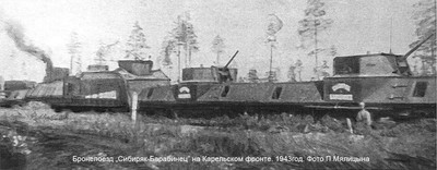 Нелегко приходилось восстановительным бригадам с винтовкой и противогазом за спиной производить ремонт железнодорожного пути, чтобы обеспечить дальнейшее продвижение бронированных поездов. В таких случаях весь их личный состав превращался в ремонтников. В считанные часы поправлялась насыпь, укладывались шпалы и рельсы. Замечательным организатором восстановительных работ зарекомендовал себя дорожный мастер С. Д. Устьянцев. Свой последний выстрел бронепоезд «Сибиряк-барабинец» сделал на станции Сортавала, что у северного побережья Ладожского озера, но не по врагу. Это был ещё один салют Победы, из тех, что звучали в те майские дни.